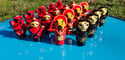 Straight out of Mongo, comes a magnificent mash up of a familiar childhood toy and the magnificently campy 1980's version of Flash Gordon. Hurling their bodies into the void, comes four of the most glamorous baddies this side of the universe: Ming the Merciless, General Klytus, Royal Guard and 'Pig Guard'. These four pieces offer up four original sculpts by MJC, each resin piece hand molded, cast and painted.